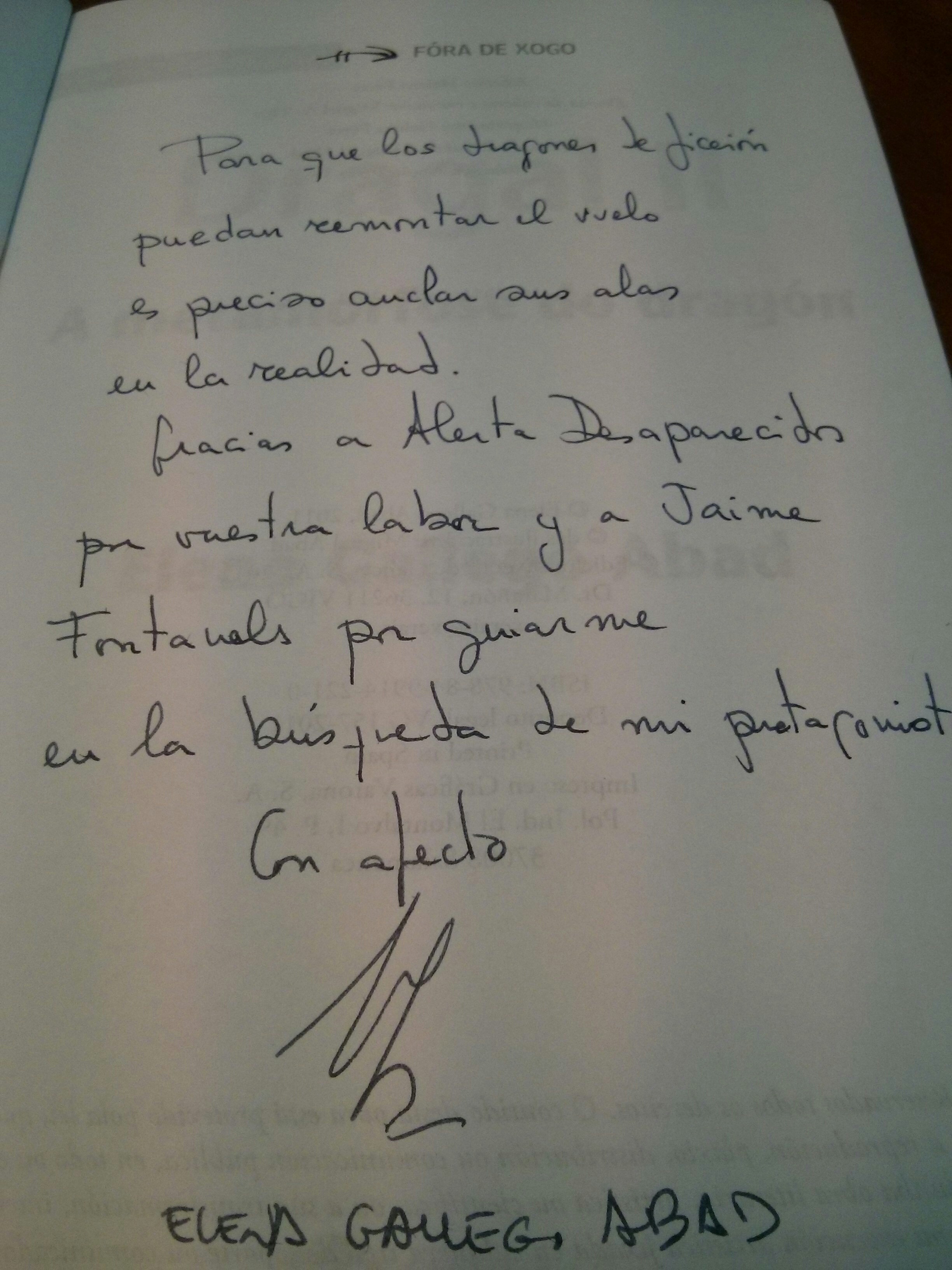 Quiero agradecer a ¿DÓNDE ESTÁS?, y autor D. Jaime Fontanals, que amablemente me lo ha enviado por correo. Manual que me ha servido de guía y de gran ayuda a la hora de encauzar y estructurar los datos con los que contaba. Para él mi más sincero agradecimiento, tanto por la labor que desenvuelve en prestar ayuda a todos aquellos que sufren en sus carnes una tragedia como es la desaparición de un ser querido.